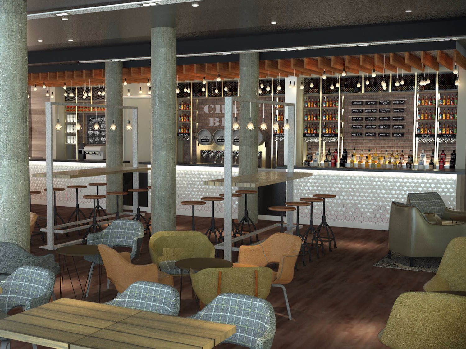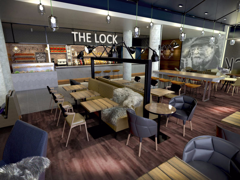 Hotel restaurants & bars can be terribly under utilised! At DoubleTree by Hilton - Leeds, this was the case. Starting with a very steryle bar, remote from the breakfast restaurant due to a disused reception area, I created a fun deli bar & restaurant that not only retained hotel guests, but also invited in people from the restaurant hub of Granary Wharf. It is now used all day long. Taking inspiration from the nearby canal, I developed a narrative of a bar operated by the old lock keeper using the services of the local canal boat builders.